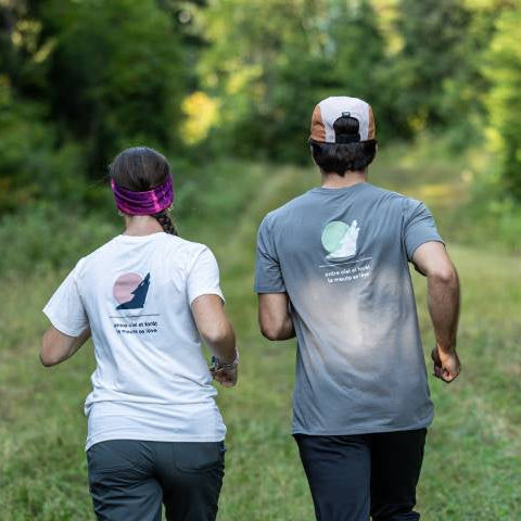 The women's short sleeve Flashdry XD t-shirt by The North Face is a great choice for running or hiking! The "Day" design is inspired by the sunrise over the boreal forest in the Charlevoix region during the UTHC in september.