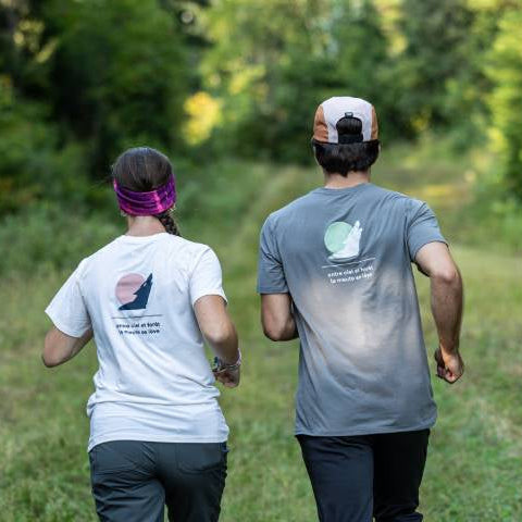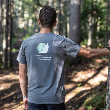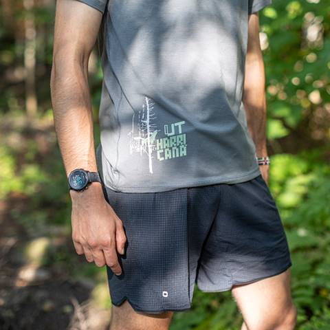 Le t-shirt à manches courtes pour homme FlashDry XD de The North Face est un excellent choix pour la course ou la randonnée ! Le design Nuit s’inspire du coucher de soleil sur la forêt boréale de la région de Charlevoix pendant l’UTHC en septembre.
